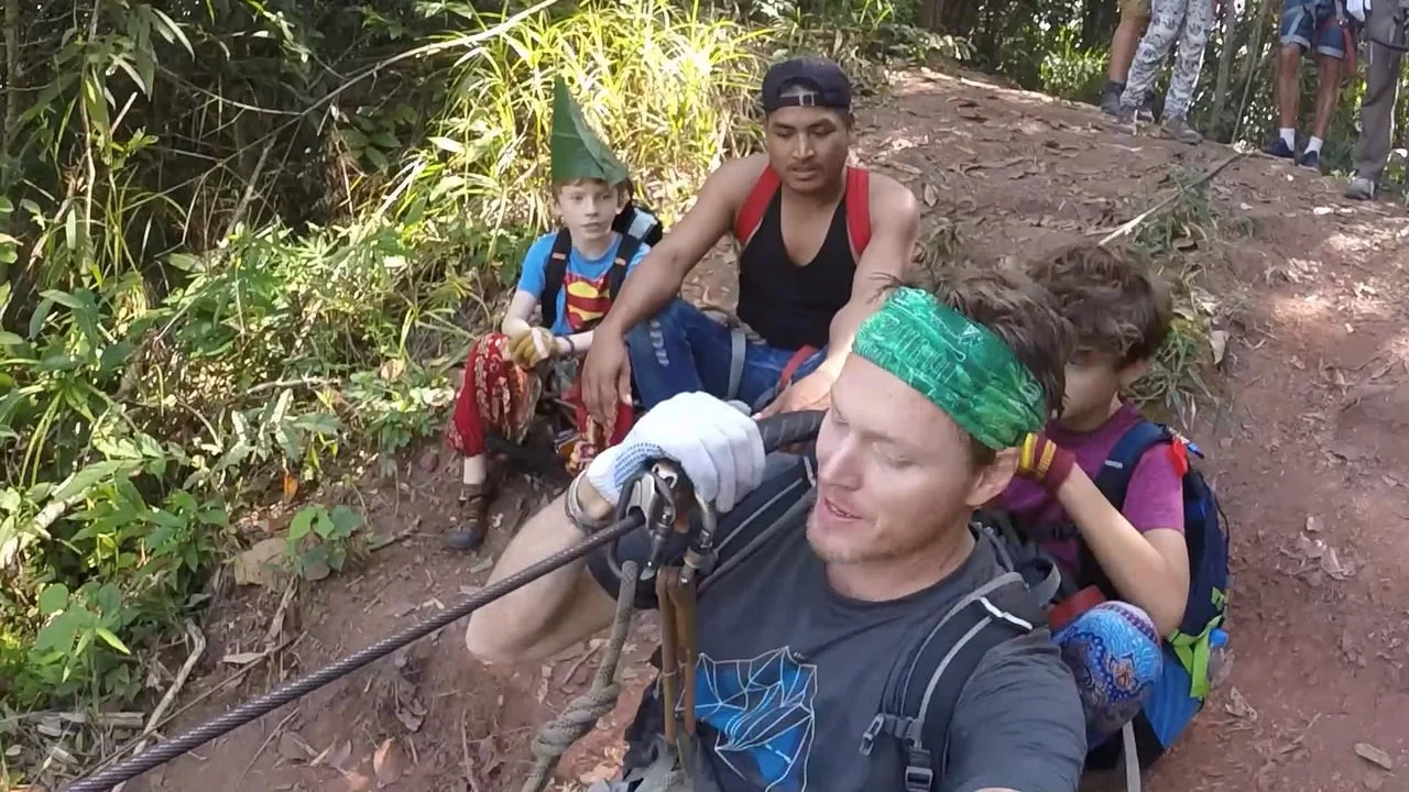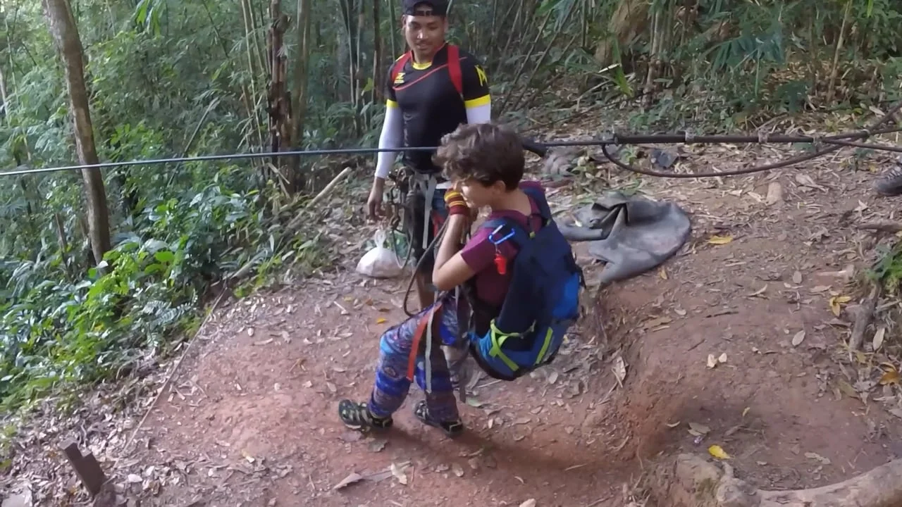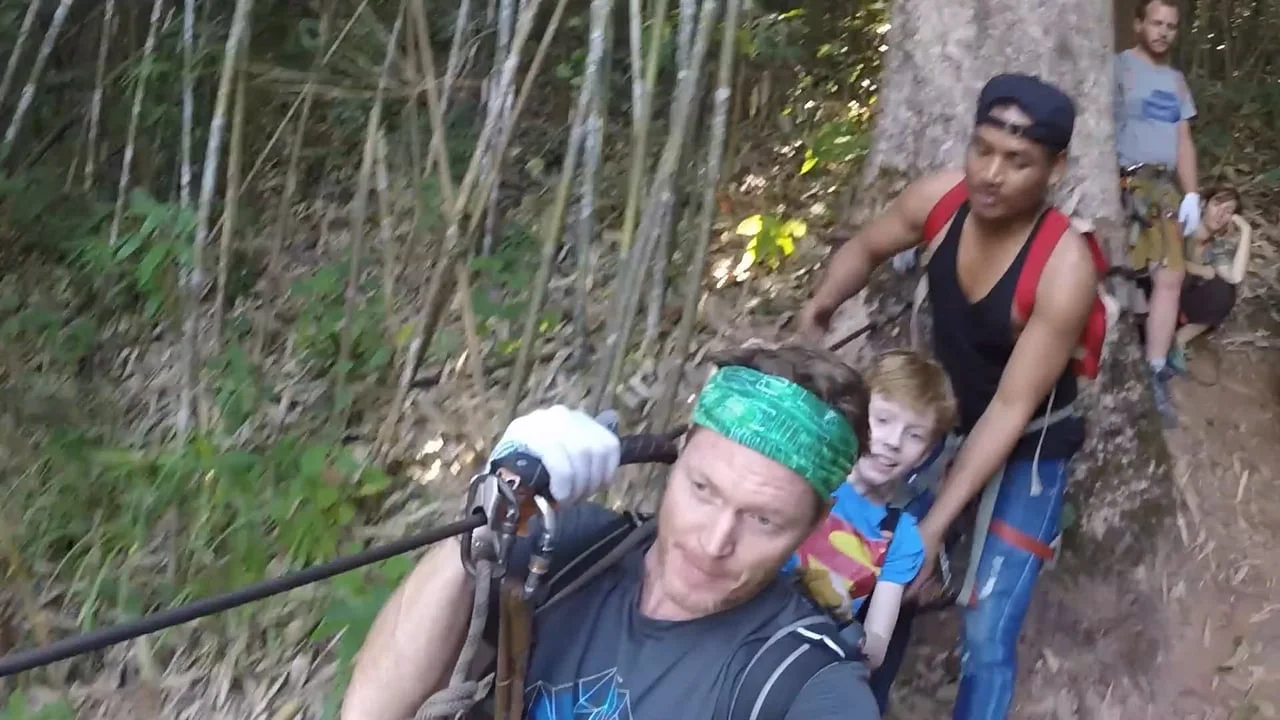 Won's we got out of the pick up truck a man told us how to put our zip line harness on and then we had to walk like fifteen to twenty minutes then we had our first zip line across the river. Then we walked what seemed like forever and then I thought we were there. But then I overheard that we were only a quarter finished hiking and l was sweating like crazy and my head hurt then won's we got close to halfway Daddy offered to carry my bag because he could tell I was exosted.
