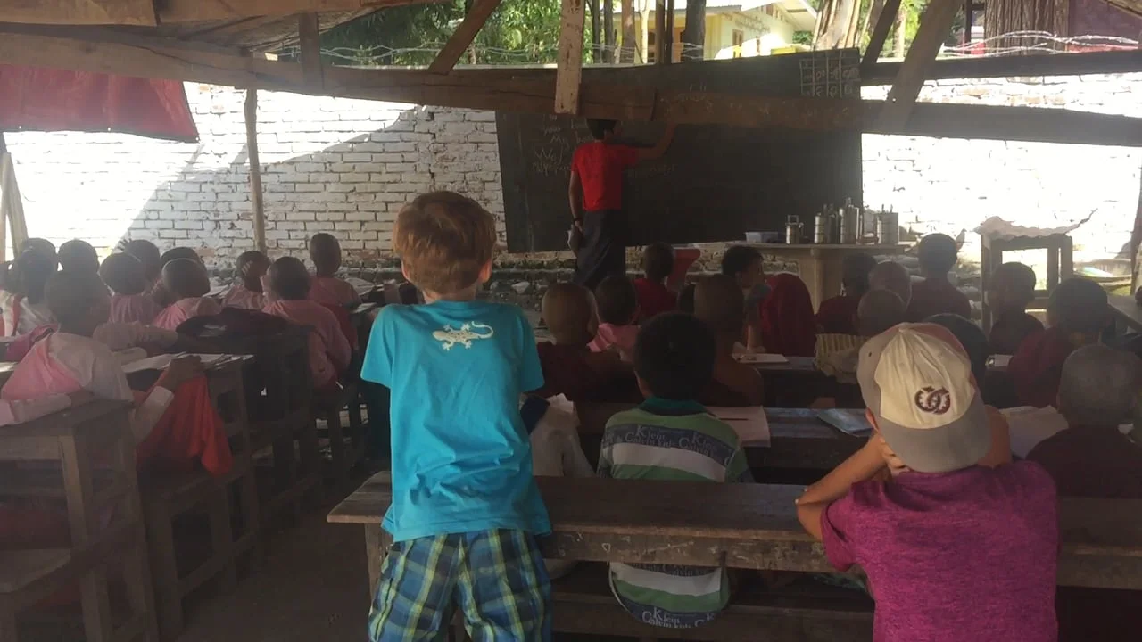 From Bagan we all headed to Mandalay (on a 7 hour bus). After being out in the more remote areas of Myanmar and discovering the countryside for a week, Mandalay was a bit of a let down. A big, busy city. The northern capital of the country. We hired a driver to spend the day with us and take us to many of the attractions outside of the city. Our favourite part of the day, we stumbled upon completely by chance. We were headed up to a temple and a lookout point over the city. As we were driving up the mountain, we passed many novice nuns and monks who were playing, just outside of their school. We told our driver to stop, so we could get out and see of we could visit the school. So happy we did. What a cool experience. The school had 2000 students and 60 teachers. We met and spoke with the principal (who was very keen to speak with Max & Sully) and he allowed us to wander about the school grounds, take picture and even have Sully and Max participate in a grade 4 english class. The best!!