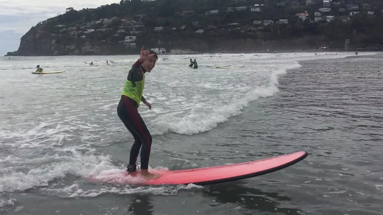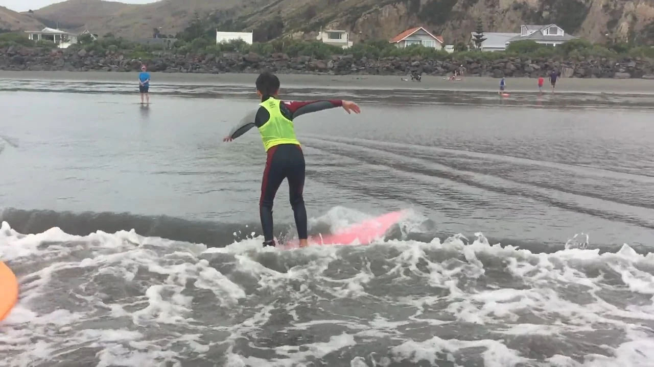 Of course I was never someone who dreamt about the biggest wave imaginable and possibly riding it! Actually that crazy thought would make me stay up another half hour in the middle of the night!! But there I was in Christchurch, NZ surfing for the first time in my life!! I never thought I would get the chance but then Jay’s friend Jeni organized a day of surfing for me!!! I enjoyed it SOOOO much that I’ve decided to do it for the WHOLE WEEK!!! I was so excited on my third wave I started trying to stand up on my board!! I got the hang of it on my twelfth wave though but I got this really HUGE wave and I stood up and was yelling to Jay that i was really DOING it!! Then the wave started to slow down and I was still trying to balance and then my board VEERED sharply to the left and then I went catapulting off the side of my board! Luckily it wasn’t too shallow but still…!! I had a ripper (I’m going to copy Max who is trying to copy Jackson!!) of a time out there catching waves and flying off my board!!!