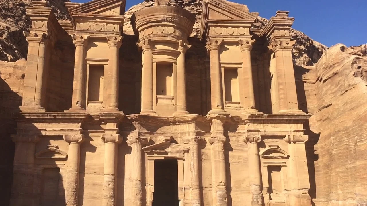 Eventually, we started hiking back and we saw so many camels and mules and horses crossing the path! When we got back to our hotel Max and I were very disappointed because Jay said it was too late to go on Petra By Night with him. So the next morning when we woke up he showed us some pictures. To be honest it wasn't that great. Even Jay said that it wasn't that great so we didn't miss anything. Until 2pm we stayed in the hotel researching (I am planning Greece) and the reason for that is because Jay had read somewhere that the shadows were in your favour when you hiked up to the monastery (1111 steps!). It was supposed to be cooler then, so that's what we did! At times it was hard and at times it was easy but the show at the top was worth it! There was this guy on top of the monastery who was climbing all over it! I was very tempted to get his autograph! I was also really afraid that he would fall. The views up there were amazing! The climb back down was much easier because we were going down! At the bottom we got a mule to ride on and the price was 2 for 5JOD (1JOD=$2CAD) which is the price I recommend you take. We rode the mule all the way back to the Treasury and then walked the rest of the way. When we arrived at the entrance/exit there was an ARMOURED ARMY VEHICLE there! It wasn't a tank because it had no guns so it must've been a troop transporter!! The next morning I went downstairs and did 14 pages of math! I'm now only 52 pages away from finishing! After that we started to get packed up and I wrote this Blog! We are going to the Red Sea tomorrow! Apparently the water is CRYSTAL CLEAR!