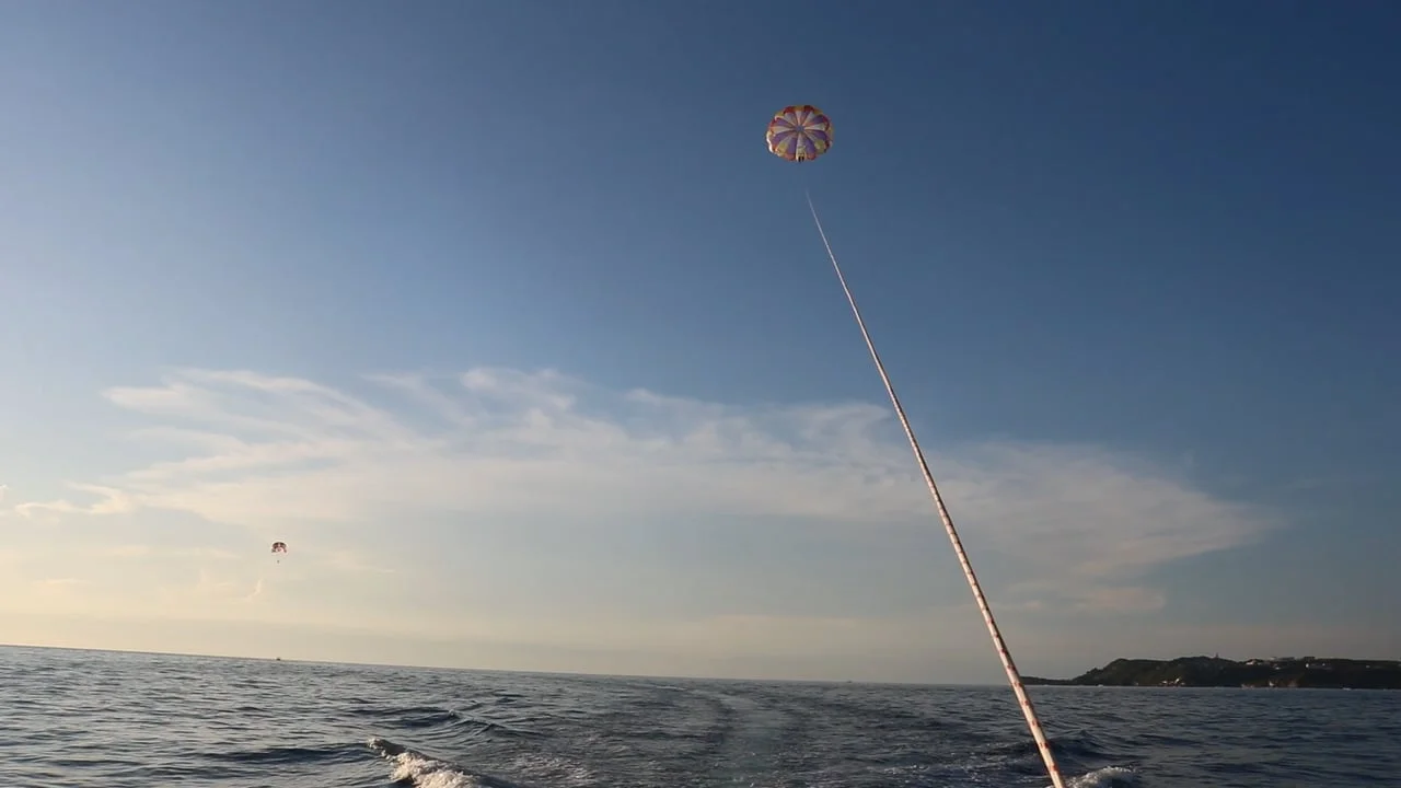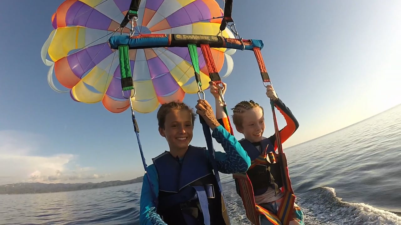 The wind wanted to keep us up there but the line was stronger! The second time Jay played a joke on us and 'dipped' us into the water! He must've told the para-men to do it! Max and I both kept thinking (and saying) "please no sharks please no sharks!" because we didn't wanna get our legs bitten off! Parasailing is awesome though! Once you get over the initial shock of being so high up you actually feel really secure!